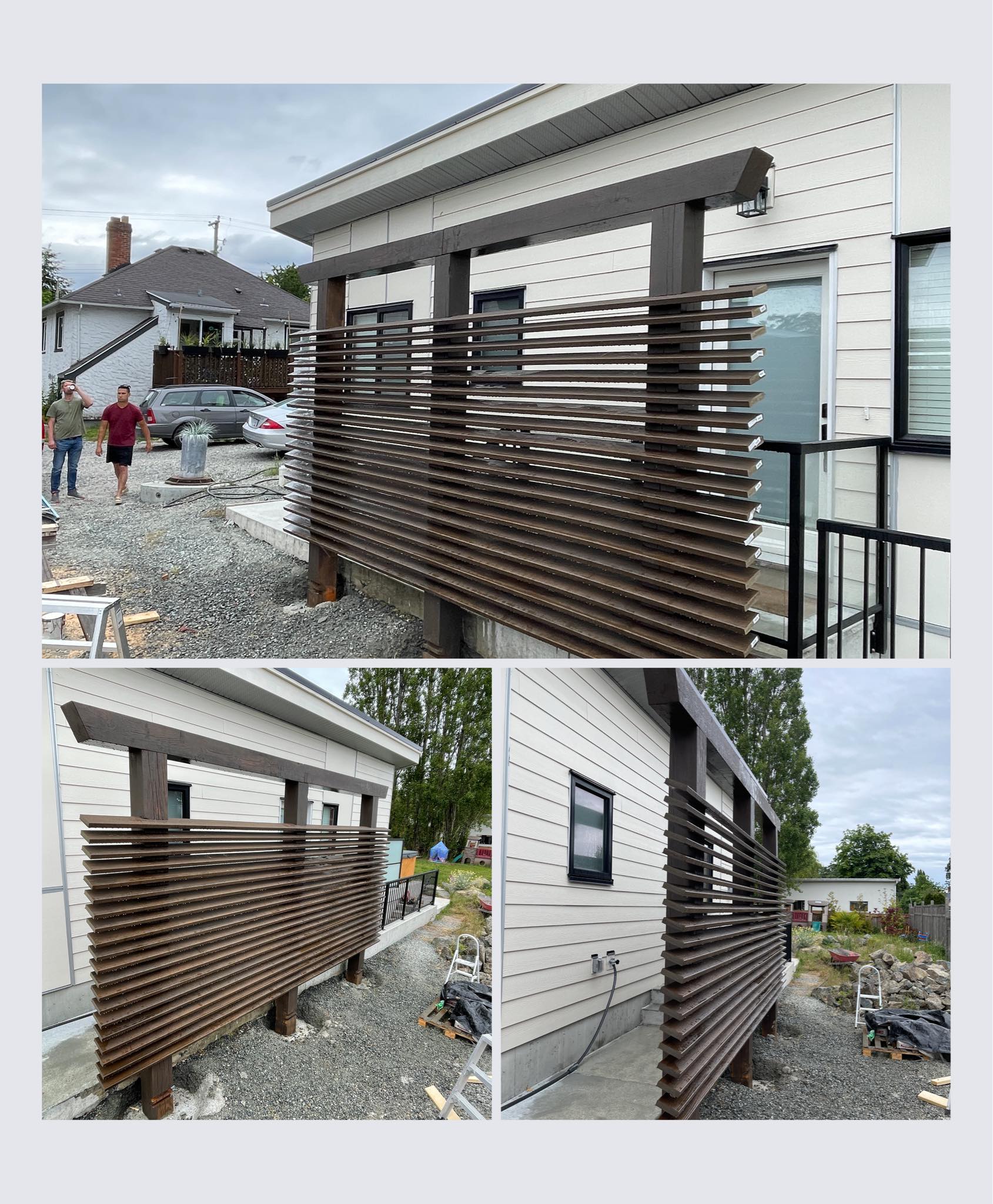 This sundeck redesign project was a rewarding challenge from start to finish. With a project site just not far from Victoria, we began by scrapping the old deck, which had seen better days, and focused on building something new and beautiful over a large rock face that overlooked the surrounding woods. These types of projects are always a lot of fun because they require exact measurements and attention to detail. Every corner needed to be aligned perfectly with the natural rock formations, ensuring the deck integrated seamlessly with the landscape.